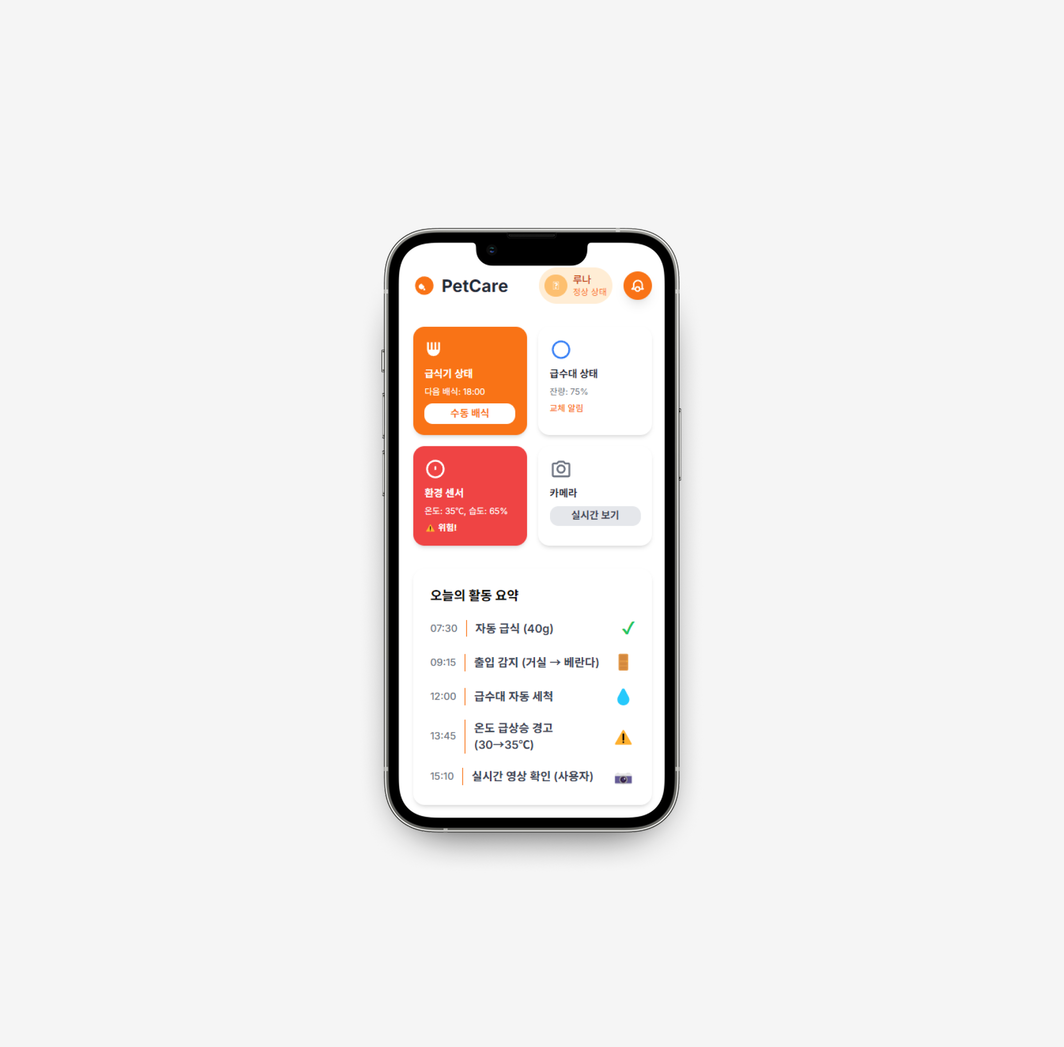 ±Þ½Ä±â¡¤±Þ¼ö´ë¡¤È¯°æ ¼¾¼¡¤Ä«¸Þ¶ó¸¦ ´ÜÀÏ ¾Û¿¡¼ ½Ç½Ã°£ Á¦¾îÇϰí, ¿Â¡¤½Àµµ ±Þº¯/ºñÁ¤»ó ¢À½/ÃâÀÔ °¨Áö¸¦ Áï½Ã